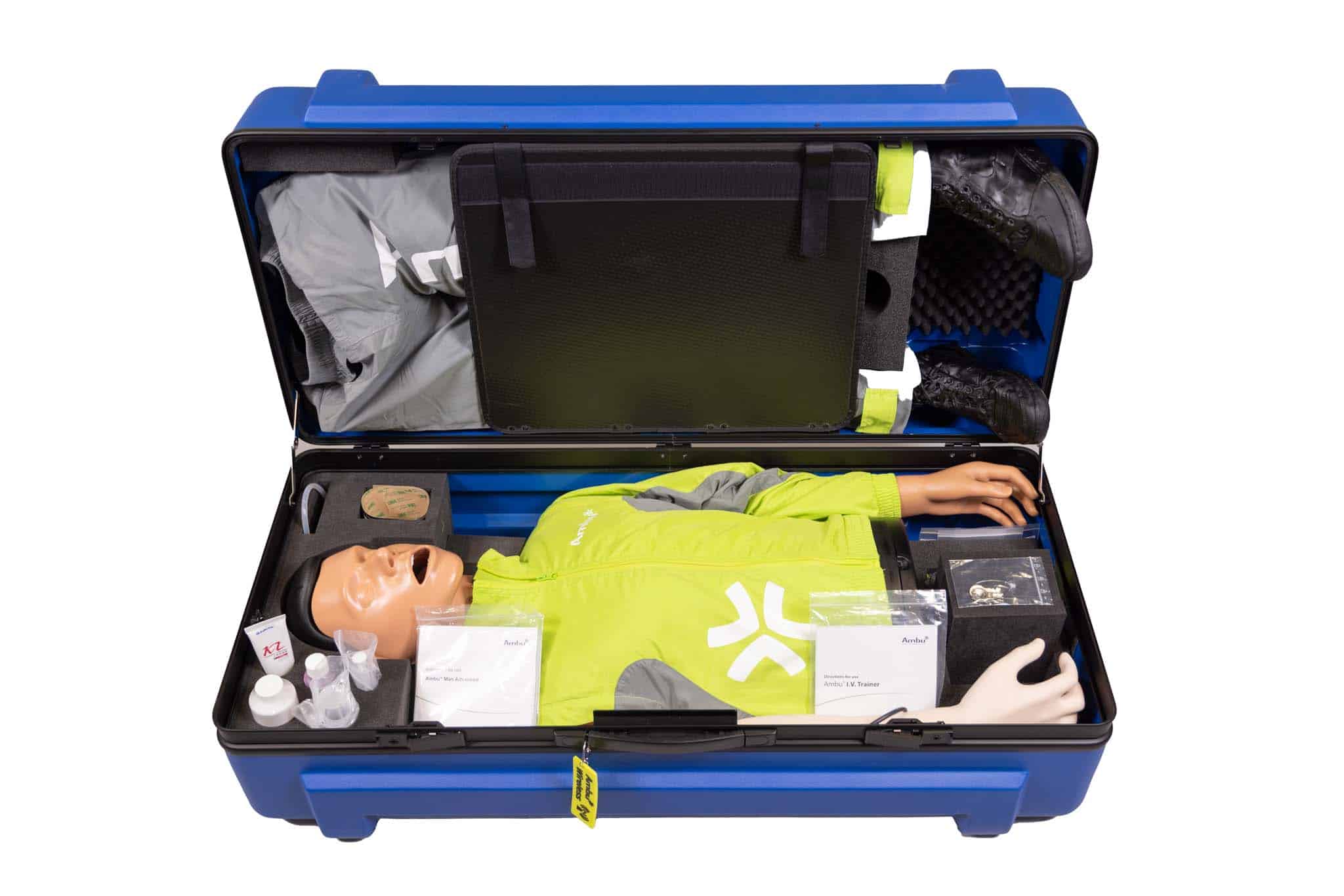 Ambu Advanced IV är en avancerad vuxendocka framtagen för realistisk träning i hjärt-lungräddning, luftvägshantering och intravenös behandling. Dockan kombinerar naturtrogen anatomi med avancerad teknik, vilket gör det möjligt att öva på bröstkompressioner, ventilation, intubation och defibrillering i en och samma enhet.
