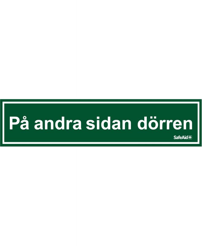 Skylt (Grön) På andra sidan dörren 21×5 cm